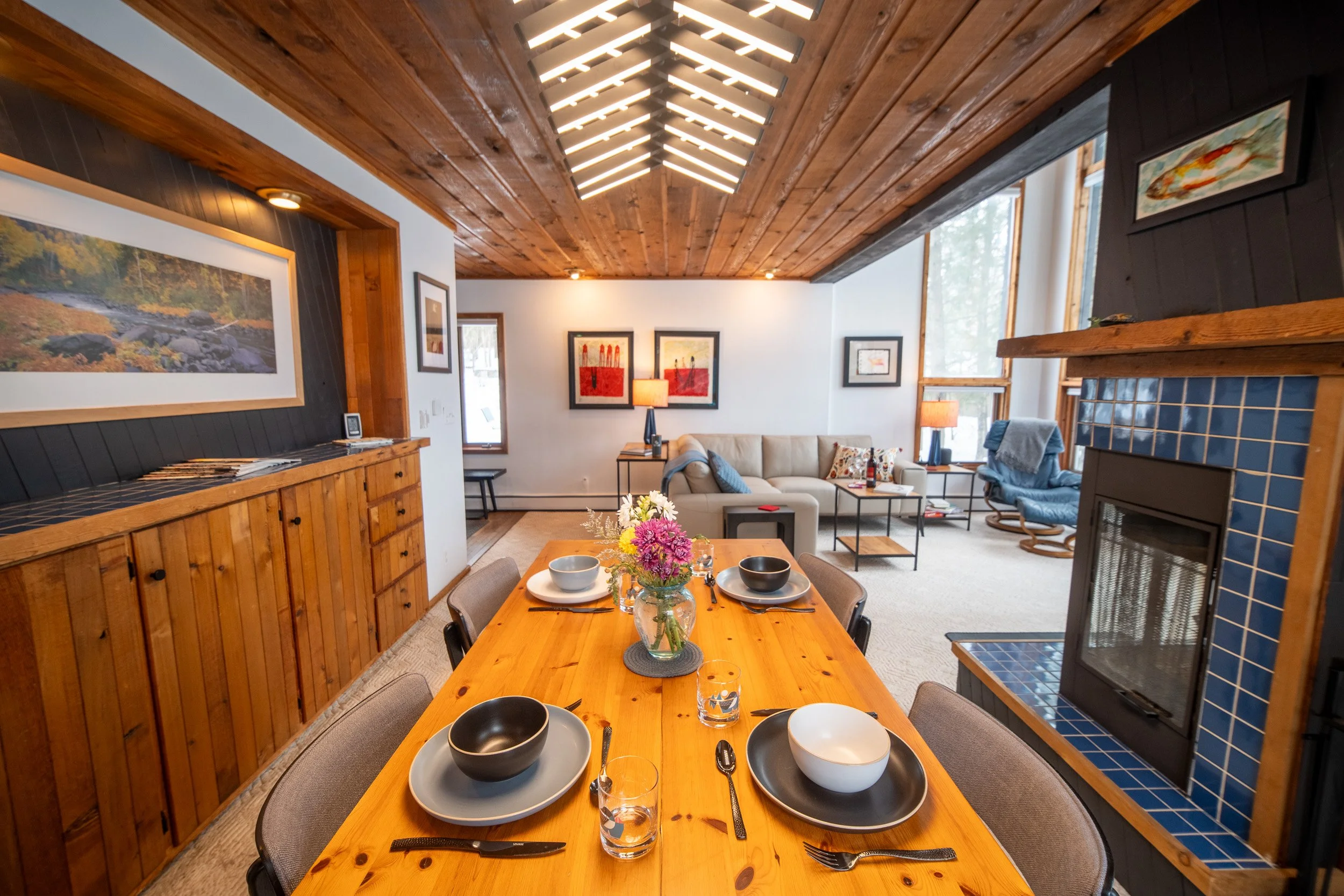 Sleeping spaces are split between the main level and a finished lower level, giving groups flexibility and separation when needed.